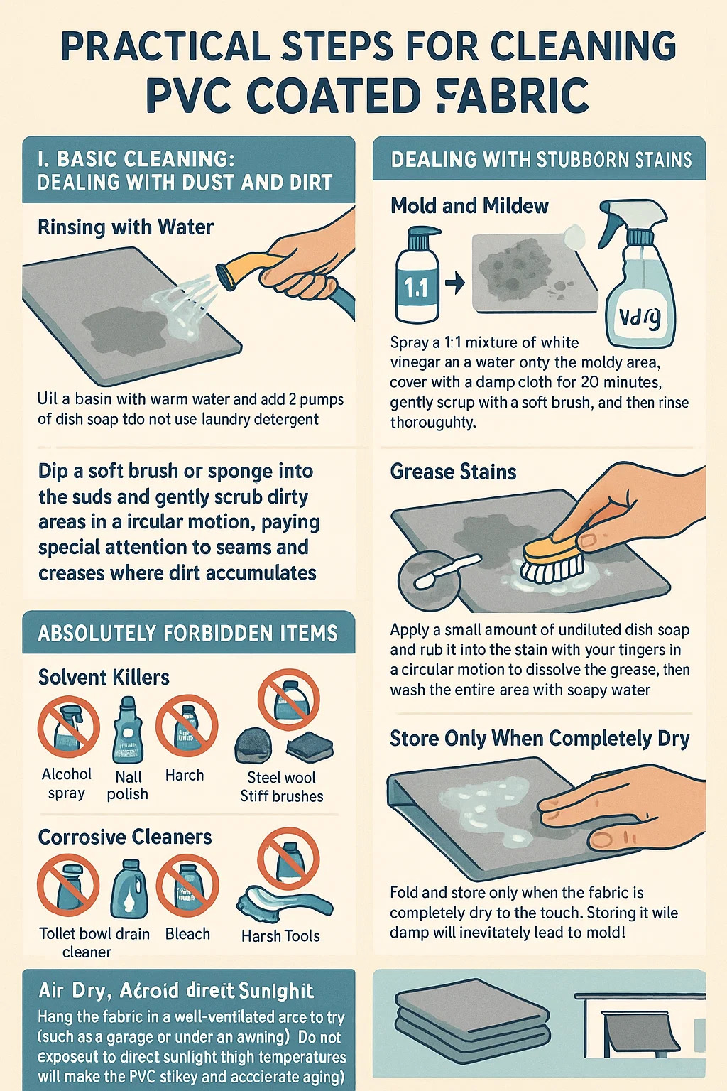 Voici les étapes pratiques pour le nettoyage Tissu enduit de PVC :